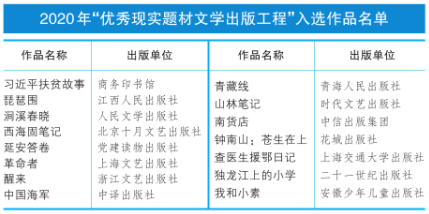 2020年“優(yōu)秀現(xiàn)實題材文學(xué)出版工程”入選作品名單