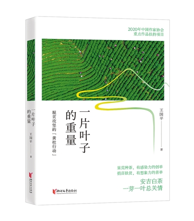 王國平報告文學(xué)《一片葉子的重量——脫貧攻堅的“黃杜行動”》寫的黃杜村,位于浙江省湖州市安吉縣,那里曾經(jīng)是個貧困山村。“一片葉子富了一方百姓”,在擺脫貧困的道路上,村民們艱苦奮斗,使黃杜村成為安吉白茶的重要產(chǎn)地,家鄉(xiāng)面貌煥然一新。