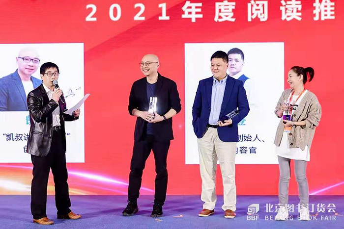 論壇上,為熱心閱讀推廣事業(yè)并做出了突出貢獻(xiàn)的三位“直播達(dá)人”——樊登讀書創(chuàng)始人、首席內(nèi)容官樊登,著名節(jié)目主持人王芳,“凱叔講故事APP”創(chuàng)始人王凱,獲頒“2021年度閱讀推廣大使”證牌。此外,融合國家出版發(fā)行信息公共服務(wù)平臺的CNONIX應(yīng)用示范單位銷售數(shù)據(jù)和商報·奧示監(jiān)測數(shù)據(jù)的2020年及2021開年最新統(tǒng)計(jì)數(shù)據(jù)分析報告同期發(fā)布。