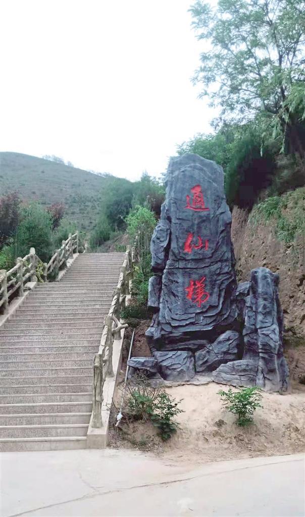 一條羊腸小道蜿蜒了千年,承載了無(wú)數(shù)游覽者匆匆的步履,在人們無(wú)數(shù)次的暢想中,化成了一條金光大道,讓老人、孩童和物資可直達(dá)寺窟門(mén)外。醒目的“通仙梯”石刻指引人們沿著游步道拾級(jí)而上,領(lǐng)略綠樹(shù)掩映、曲徑通幽的絕好勝景,金黃的葉子在濃密的綠葉間格外鮮亮,松樹(shù)和柏樹(shù)你擠著我,我挨著你,密密匝匝,在五月的陽(yáng)光和微風(fēng)中,吟唱著生命的贊歌。白色槐花香氣馥郁,紅色槐花鮮艷奪目,它們從高高的枝頭垂下來(lái),或從山崖斜伸而出,或與游人摩肩而過(guò),或者親呢的撫摸一下游人的笑臉。掩映綠樹(shù)中的亭子,是一道絕好的景觀,讓人產(chǎn)生一種遐想和逗留的念想。亭子旁叫不出名的小鳥(niǎo)輕盈的飛舞和歡快的鳴叫,增添了一種活潑美妙的情趣。這情趣給花樹(shù)、亭子帶來(lái)一種靈性,頻添了無(wú)限韻味和妙趣。