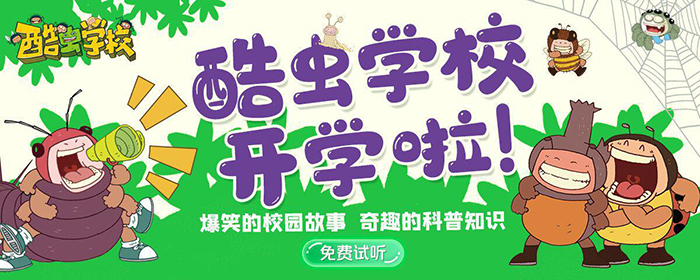根據(jù)原創(chuàng)昆蟲科普知識爆笑校園漫畫改編的《酷蟲學(xué)校科普有聲故事》,以爆笑幽默的校園故事、新奇有趣的科普知識、廣播劇標(biāo)準(zhǔn)的精心制作等特點,激發(fā)小讀者對大自然的熱愛,建立生態(tài)文明的宏觀觀念。