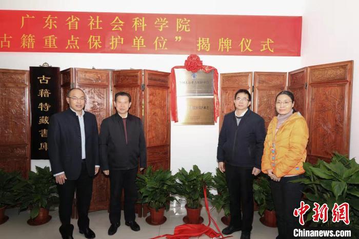 中新網(wǎng)廣州12月29日電 (記者 程景偉)記者29日從廣東省社會(huì)科學(xué)院獲悉,該院成功入選為“全國(guó)古籍重點(diǎn)保護(hù)單位”,并于近日舉行了揭牌儀式。