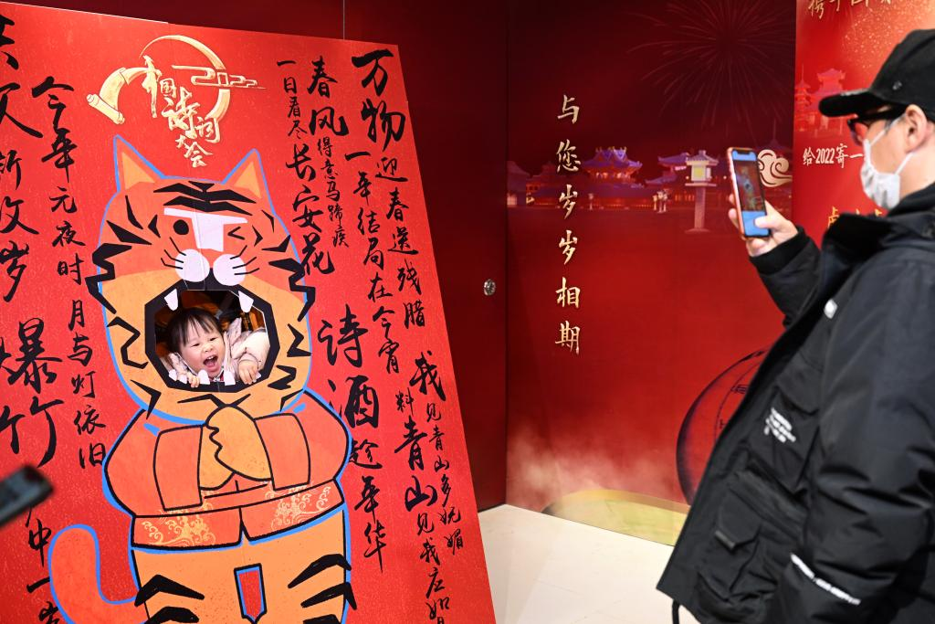春節(jié)假期,作為文化節(jié)目《2022中國詩詞大會》的線下活動,詩詞市集在北京國貿(mào)商城舉行?;顒友埵忻駥懴乱痪湓?,給2022年寄出一張詩詞明信片,帶動詩歌熱潮,推動詩詞文化走入百姓家。