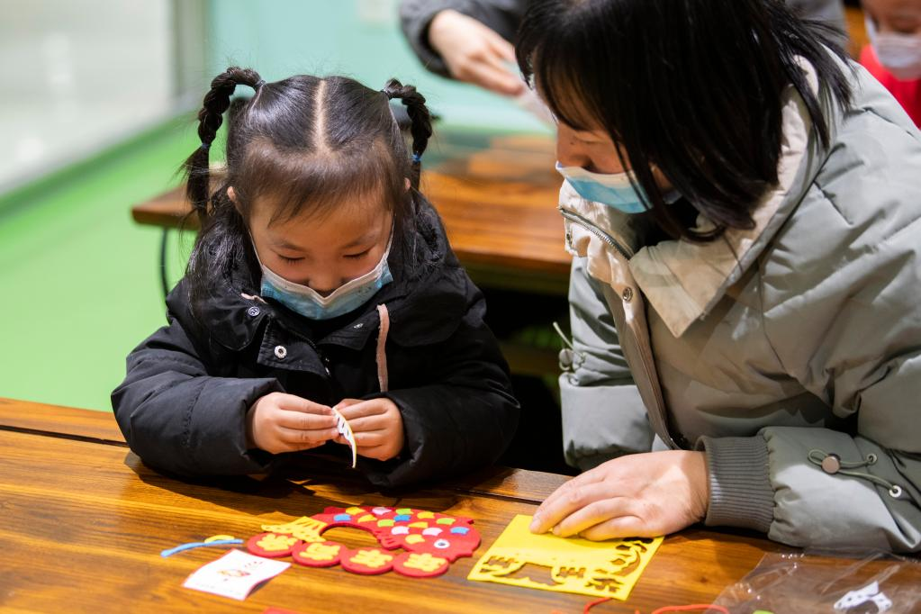 2月6日,小朋友和家長在太原市圖書館參加“巧手迎新春”手工DIY活動(dòng)。