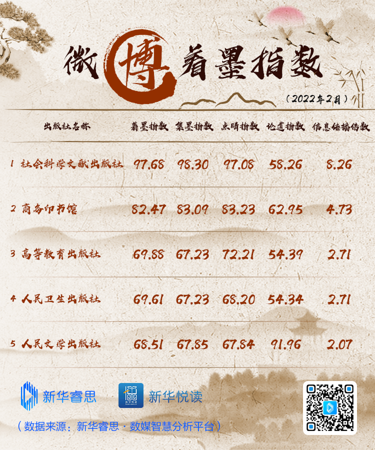 原標題:“新華睿思·出版社新媒體傳播影響力2月榜”出爐