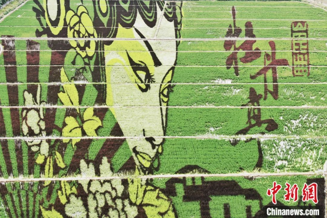 2020年8月,航拍江蘇昆山張浦鎮(zhèn)“牡丹亭”稻田藝術(shù)畫(huà)。中新社記者 泱波 攝