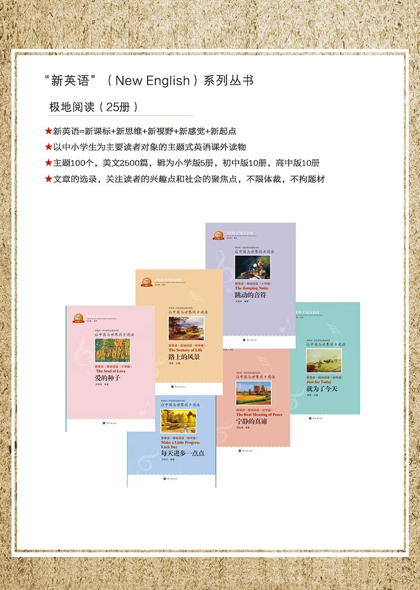涉及與中小學(xué)生學(xué)習(xí)、生活、成長密切關(guān)聯(lián)的主題100個、美文2500篇,并依照難易梯度,輯為小學(xué)版5本,初中版10本,高中版10本。