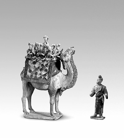 三彩載樂駱駝及牽駝俑(唐代),1959年西安中堡村唐墓出土。圖片選自《國寶中的黃河文明》