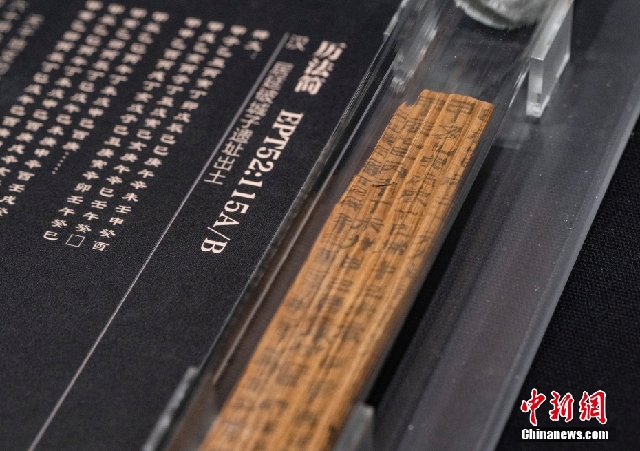 1月17日,“二十世紀初中國古文獻四大發(fā)現(xiàn)展”正在位于北京的國家典籍博物館內(nèi)展出。本次展覽分為“殷墟甲骨”“居延漢簡”“敦煌遺書”“明清檔案”四個專題,首次將分藏于各處的四大文獻薈萃一堂,集中多種類型的珍貴文物文獻共249種,382件,是目前為止“四大發(fā)現(xiàn)”文物最大規(guī)模的展覽。圖為“居延漢簡”展區(qū)中展示的一條“歷法簡”的真跡實物展品。 中新社記者 侯宇 攝