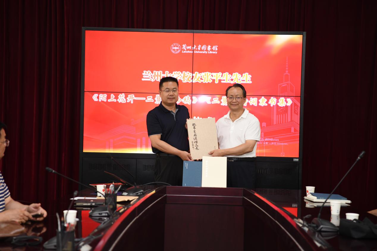 蘭州大學(xué)圖書(shū)館及直屬單位黨委書(shū)記王偉國(guó)向張平生頒發(fā)收藏證書(shū)