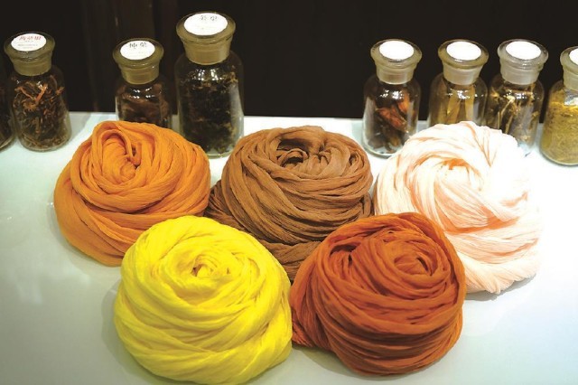 而與大多數(shù)傳統(tǒng)色彩研究者不同的是,曾啟雄極為重視實驗考證。作為一位技藝精湛的染色家,其論著里介紹傳統(tǒng)染色的文本內容及圖片,都是他親歷親為、反復實驗后的成果,這也是該書最為精彩之處。在染色實驗過程中,除了復原了傳統(tǒng)顏色的本來面貌外,作者還做出如下貢獻:首先,通過大量實驗印證了古籍記載的真?zhèn)危⒓m正了其中一些不實之處。比如,他通過在柘木里添加明礬、高溫染色后的結果,顛覆了以往認為唐代帝王穿用的“柘黃”袍服是暗淡赭黃色的普遍認知,印證其應為類似明清時代帝王使用的明黃色。其次,使用不少篇幅介紹了不同的染料、媒介物等因素對于染色效果等的制約作用。以石榴皮作為染材為例,當它與不同媒染劑,如明礬、鐵等進行染色時,則會形成由黃色到黑褐色的不同顏色。即使采用相同的染法,因棉麻絲綢等介質迥異,也會染出不同顏色等。最后,該書對于各種染料特點、工藝程序、顏色效果等的表述,較其他相關論著也更加纖悉無遺和引人入勝,如關于紫膠蟲的染色工序的詳盡介紹等,讓讀者有一種身臨其境、意欲參與的感受。
