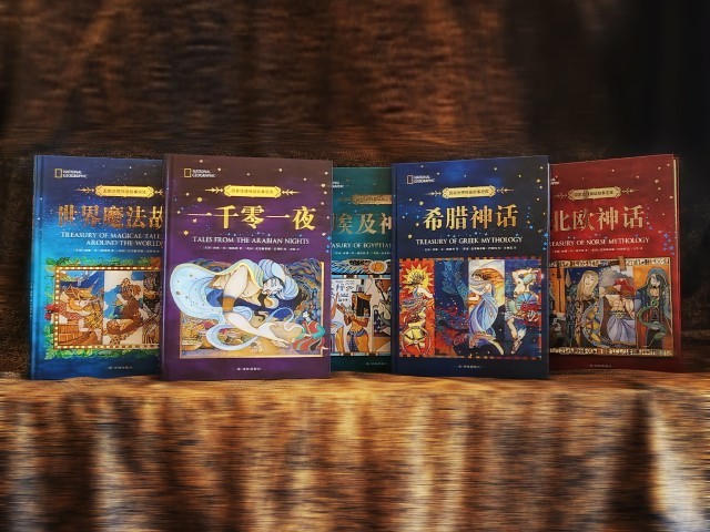 “國家地理神話故事寶庫”叢書包含五冊圖書:《希臘神話》《北歐神話》《埃及神話》《一千零一夜》《世界魔法故事》,網(wǎng)羅了全世界的經(jīng)典神話故事,幫助我們更好地理解先民的智慧。