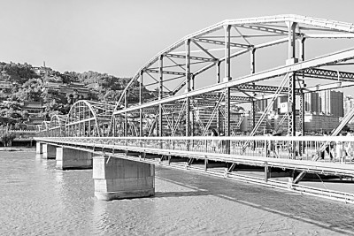 以百年時(shí)間看黃河,《黃河中國(guó)》彰顯黃河古文明之上崛起的現(xiàn)代文明。在書(shū)中我特意寫了三座百年黃河鐵橋,它們分別是蘭州黃河鐵橋、鄭州平漢鐵路黃河橋和濟(jì)南濼口黃河鐵路橋。一百年放置在歷史長(zhǎng)河里不算長(zhǎng),卻是一個(gè)較為合適的觀照近現(xiàn)代中國(guó)發(fā)展的時(shí)間點(diǎn)。從擺渡、繩渡到石橋、木橋、浮橋、鐵路橋、公路橋,橋梁建筑史的發(fā)展足以證明人類社會(huì)的進(jìn)步。黃河上最初修建鐵橋的歷史在晚清末年,正是中華民族處于內(nèi)憂外患之際,光緒二十六年(1900)清政府決定修建平漢黃河鐵路橋,這是黃河上的第一座鋼鐵建筑,然而在1938年抗戰(zhàn)烽火中,為阻擋日軍進(jìn)攻,被炸毀了,現(xiàn)在只剩下5孔橋墩。以5孔橋墩存在的黃河第一座鐵橋,象征著黃河上現(xiàn)代工業(yè)文明的興起與民族深深的精神創(chuàng)傷。如今80多年過(guò)去了,鄭州地段已經(jīng)修建了十余座黃河橋,每一座都很現(xiàn)代很漂亮。自新中國(guó)成立以來(lái),黃河安瀾75年,從戰(zhàn)火紛飛到國(guó)泰民安,黃河是國(guó)家昌盛、民眾幸福的最好見(jiàn)證者。
