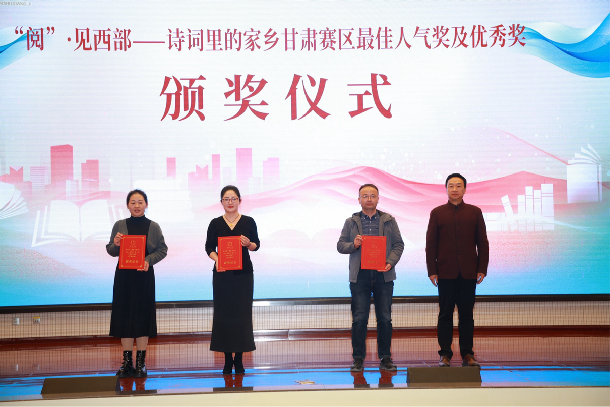 閉幕式上公布并表彰了“優(yōu)秀閱讀推廣活動(dòng)案例獎(jiǎng)”獲獎(jiǎng)人員、“‘穿越古今·夢回隴右’詩詞大賽優(yōu)秀組織獎(jiǎng)”獲獎(jiǎng)人員、“‘閱·見西部’第一季——‘詩歌里的家鄉(xiāng)’(甘肅賽區(qū))最佳人氣獎(jiǎng)和優(yōu)秀獎(jiǎng)”獲獎(jiǎng)人員。