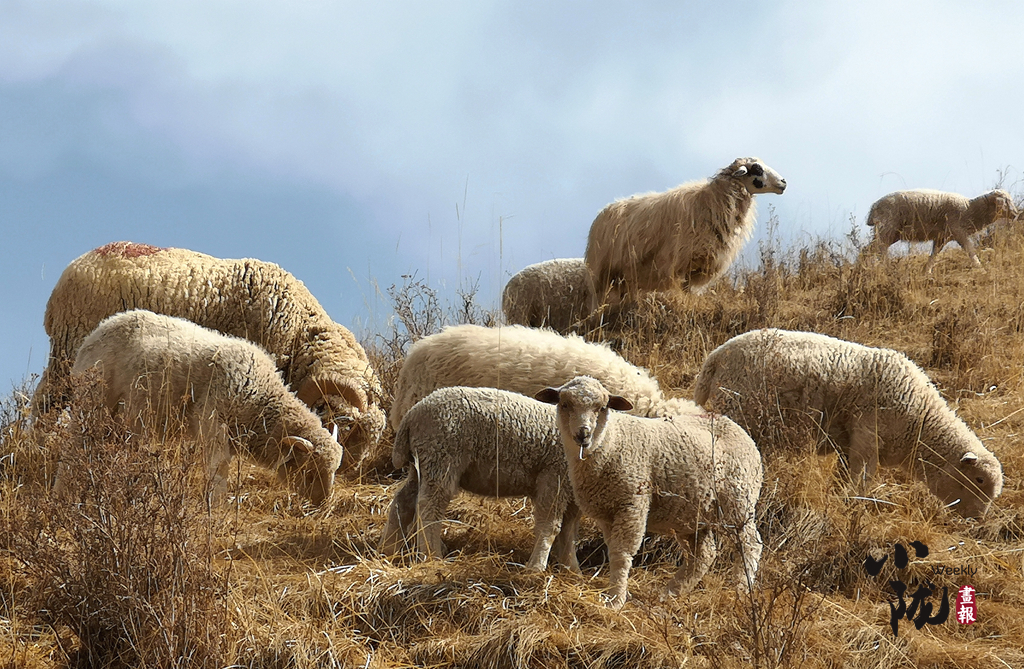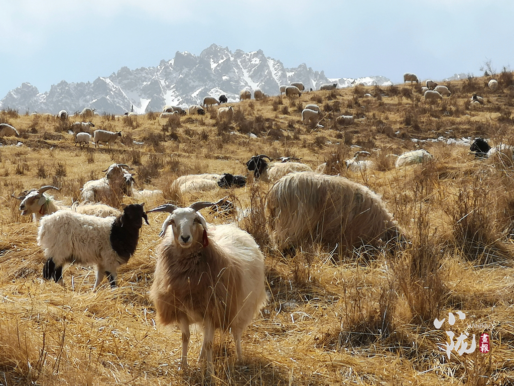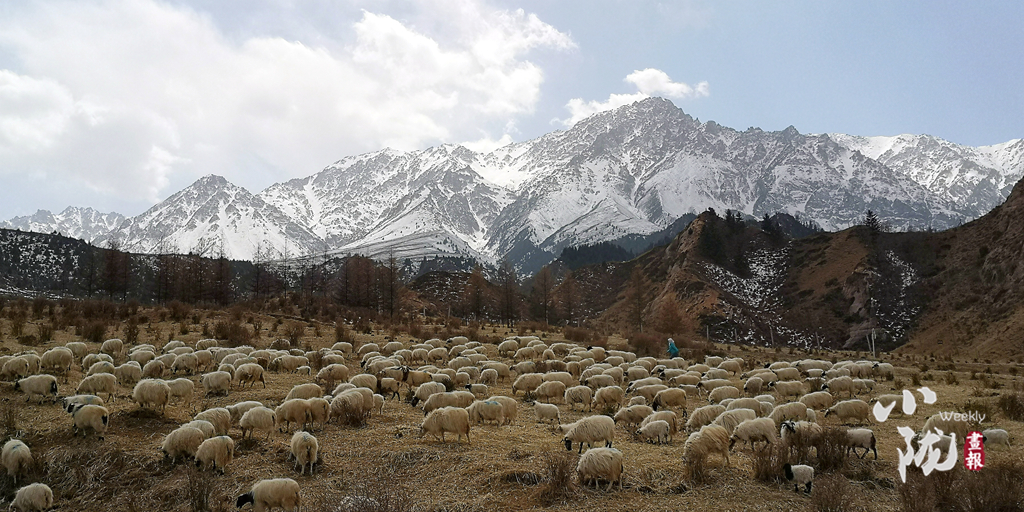 春日,祁連山山腳下羊群在悠然覓食,儼然一幅祥和靜謐的生態(tài)畫卷。