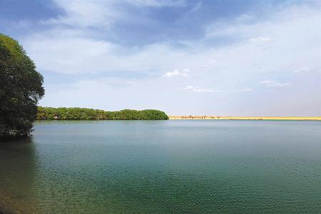 在渥洼池畔舉目遠(yuǎn)眺,在阿爾金山皚皚白雪的映襯下,偌大的渥洼池顯得安靜祥和,廣闊的水域就像一面鏡子,鑲嵌在大漠深處,在陽光的折射下顯得格外深邃而內(nèi)斂。渥洼池畔茂密的灌木林和高大密集的蘆葦蕩,將一汪湖水浸染的泛著黛綠,蘆葦和灌木在湖水滋潤下郁郁蔥蔥,高低錯(cuò)落有致,大有阡陌縱橫之勢(shì)。西岸不遠(yuǎn)處,南北迤邐著一座兩公里有余的沙坡頭,猶如一條盤旋的黃龍,亙?cè)诤奈鬟厯u頭擺尾,它曾經(jīng)以每年兩至三米的速度,肆無忌憚地向渥洼池水域逼進(jìn)。不過,在陽關(guān)保護(hù)區(qū)的精心培育下,一片密集的蘆葦,已經(jīng)爬到了沙梁頂上,將這條黃龍死死地鎖在原地,動(dòng)彈不得。
