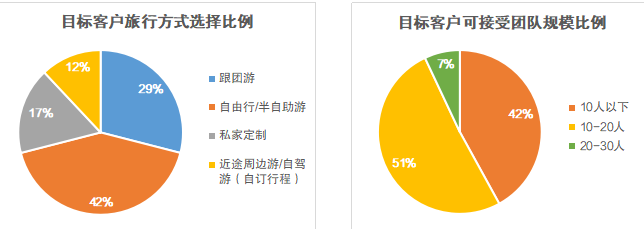 針對近五年連續(xù)兩次以上選擇跟團游/私家定制的客戶,我們就“團隊規(guī)模”這一問題安排專屬旅行顧問進(jìn)行二次調(diào)研。大部分客戶都表示,“帶老人和孩子出去玩,人少點兒大家能互相體諒”、“出去一趟不容易,人少點兒導(dǎo)游講的細(xì)致,也能多提問”。相關(guān)數(shù)據(jù)顯示,選擇“10人以下”的客戶占比42%,選擇“10-20人”的客戶占比51%,二者總和超過九成。由此可見,高品質(zhì)、深度游的“精致小團”將更受青睞。