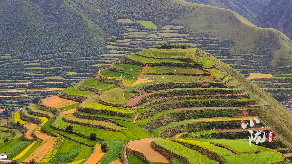 行走在冶力關,目之所及皆是美景,在半山腰上向遠處眺望,只見遠山層巒疊翠,云蒸霞蔚,梯田綠黃交錯,如詩如畫。