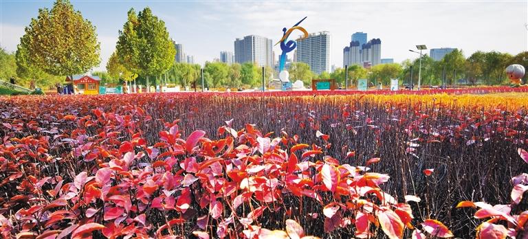 在暖陽的照射下,色彩斑斕的樹葉把這座西北重鎮(zhèn)裝點(diǎn)得多彩絢麗、如詩如畫。人們?cè)诠珗@、在街頭巷尾,享受著無邊的秋色。