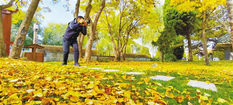 蘭山公園內(nèi)落葉勝金。