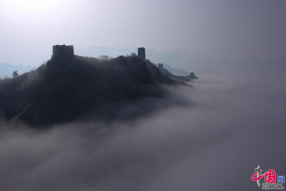 三月二十日清晨,當(dāng)云海隨著氣流漫過(guò)金山嶺長(zhǎng)城,浩浩蕩蕩飄入仿佛成為了浩瀚的海洋。