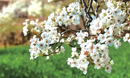 一樹樹、一朵朵雪白的梨花迎風搖曳,散發(fā)出陣陣清香。