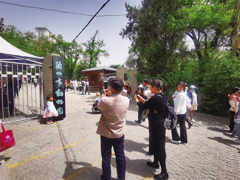 “我要和動(dòng)物園的大門合影” “快來給我和‘蘭州市動(dòng)物園’的大牌子拍張照”……5月7日10時(shí)許,前往蘭州市動(dòng)物園游玩的市民絡(luò)繹不絕,大門口懸掛著的略顯斑駁的黑底綠字的“蘭州市動(dòng)物園”的門牌,仿佛是最能觸動(dòng)人們記憶的“坐標(biāo)點(diǎn)”,大家排隊(duì)再和它照張相成為進(jìn)園的固定儀式。