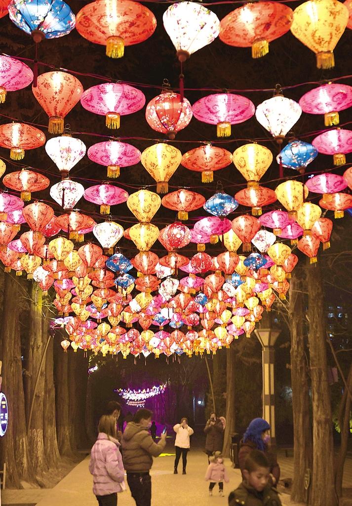 春節(jié)臨近,臨夏市東郊公園里花燈璀璨,流光溢彩,營造出濃厚的節(jié)日氛圍。