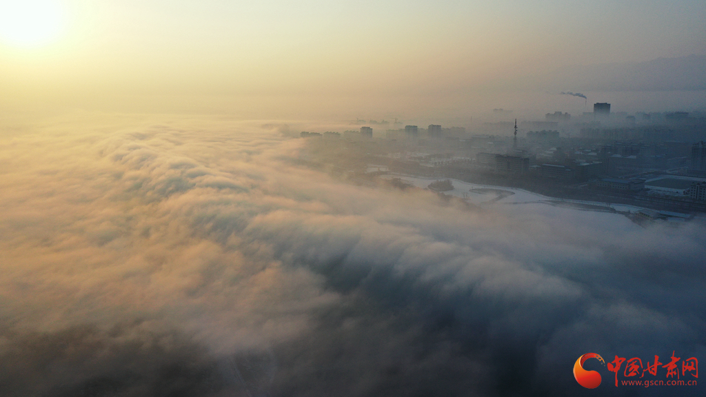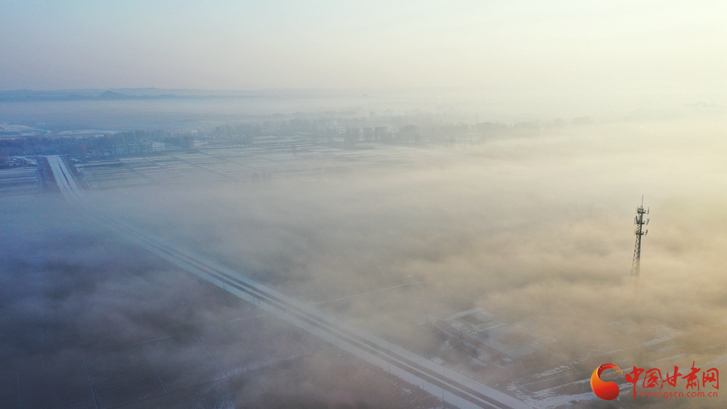 2月8日清晨,甘肅張掖市高臺(tái)縣黑河國(guó)家城市濕地公園上空霧浪翻滾,虛無(wú)縹緲,恍如天宮仙境,呈現(xiàn)出海市蜃樓般的云海奇觀,在陽(yáng)光的照射下,格外美麗。由于多年來(lái)黑河生態(tài)治理,冬天封凍,加之近日大范圍的降雪低溫天氣,黑河的水面上經(jīng)常霧氣蒸騰,兩岸的樹(shù)木玉樹(shù)瓊花,形成霧凇景觀,如同童話世界里的仙境一般圣潔,令人心曠神怡。