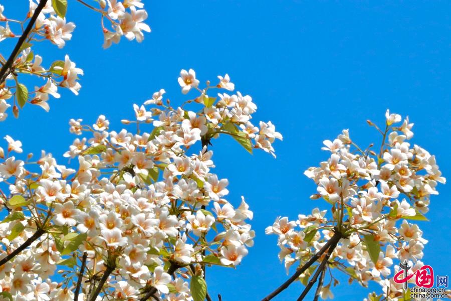 據(jù)了解,油桐的花期較短,僅半個月左右。每年四月中旬,便能看到密集成林的油桐白花簇簇,整個山頭全是花朵的世界。隨著陣陣清風(fēng),空中飄起雪白的花雨,藍(lán)天白云,落英繽紛,清香馥郁,飄逸山外。