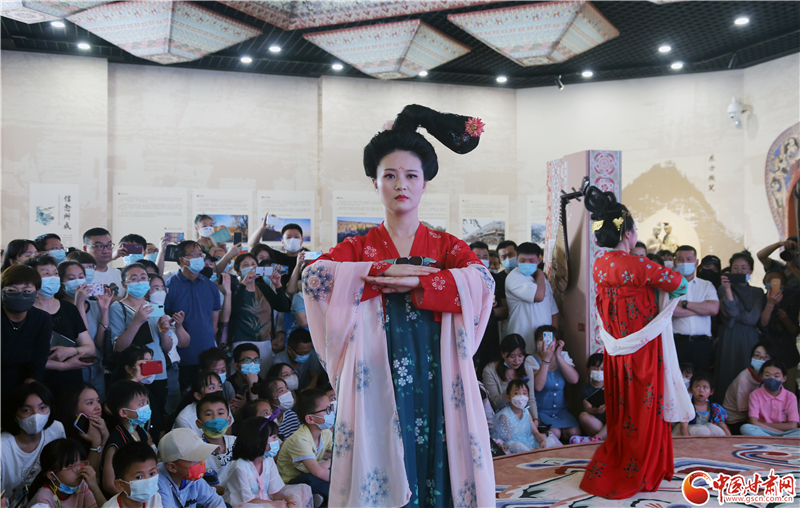 中國(guó)甘肅網(wǎng)6月11日訊(本網(wǎng)記者 程健 宋芳科)6月11日上午,值文化和自然遺產(chǎn)日到來(lái)之際,敦煌文化研究院在蘭州分院敦煌藝術(shù)館舉辦了“時(shí)代共進(jìn)、人民共享”主題展,通過(guò)虛實(shí)融合敦煌石窟體驗(yàn)、敦煌服飾展演、文創(chuàng)產(chǎn)品展示等,向廣大市民群眾全方位呈現(xiàn)了深厚的敦煌文化與莫高窟文化遺產(chǎn)。當(dāng)天的活動(dòng),中國(guó)甘肅網(wǎng)全程進(jìn)行了網(wǎng)絡(luò)直播。
