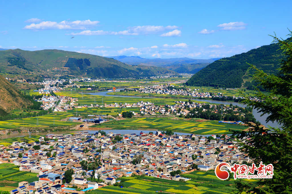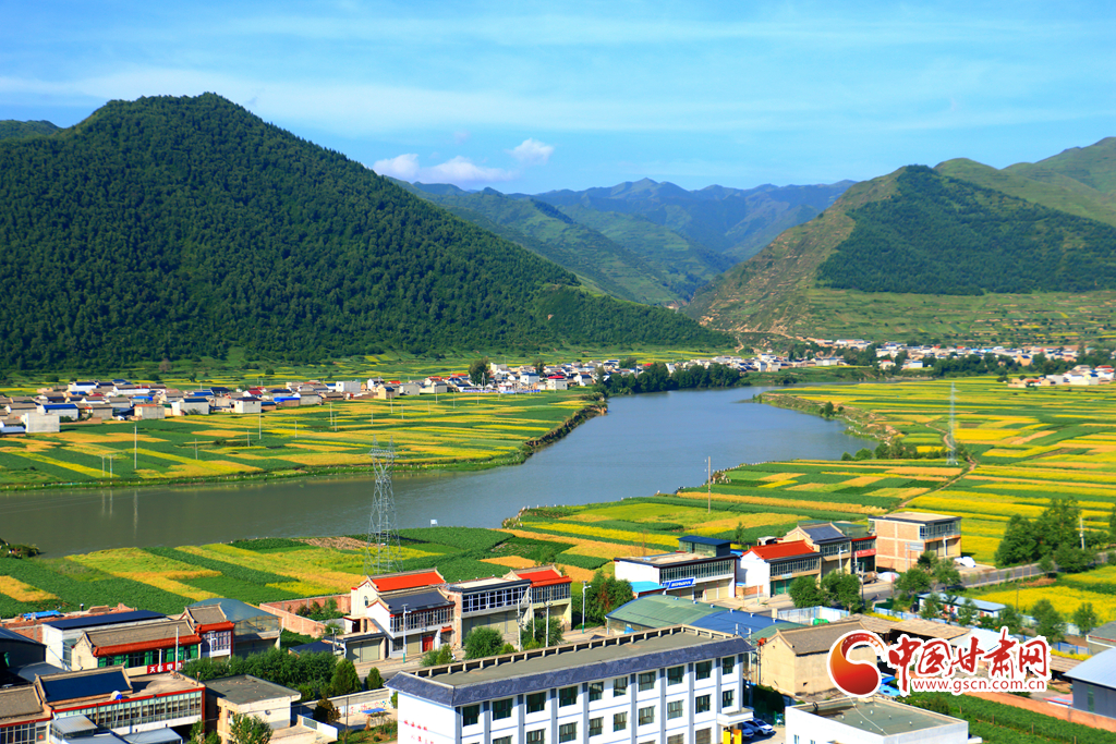 盛夏時節(jié),岷縣十里鎮(zhèn)洮河兩岸的油菜花競相綻放,與民居、山川、林地、豐收在望的各類中藥材相映,構(gòu)成了一幅生態(tài)宜居的田園畫卷,美不勝收。