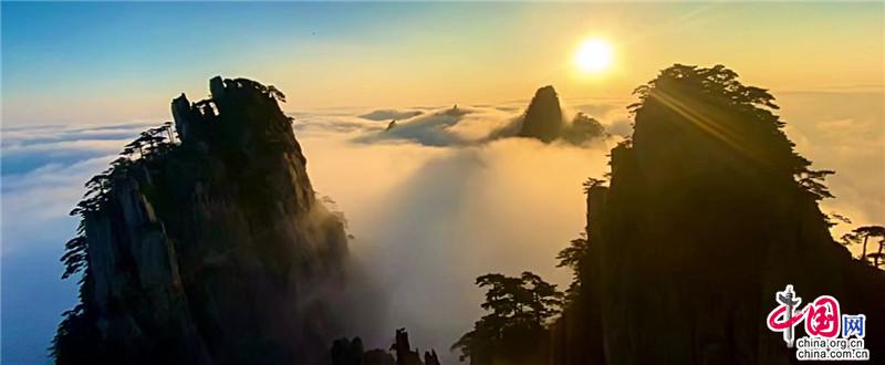 原標(biāo)題:國慶假期黃山云海遇見日出 美景讓游客驚訝不已