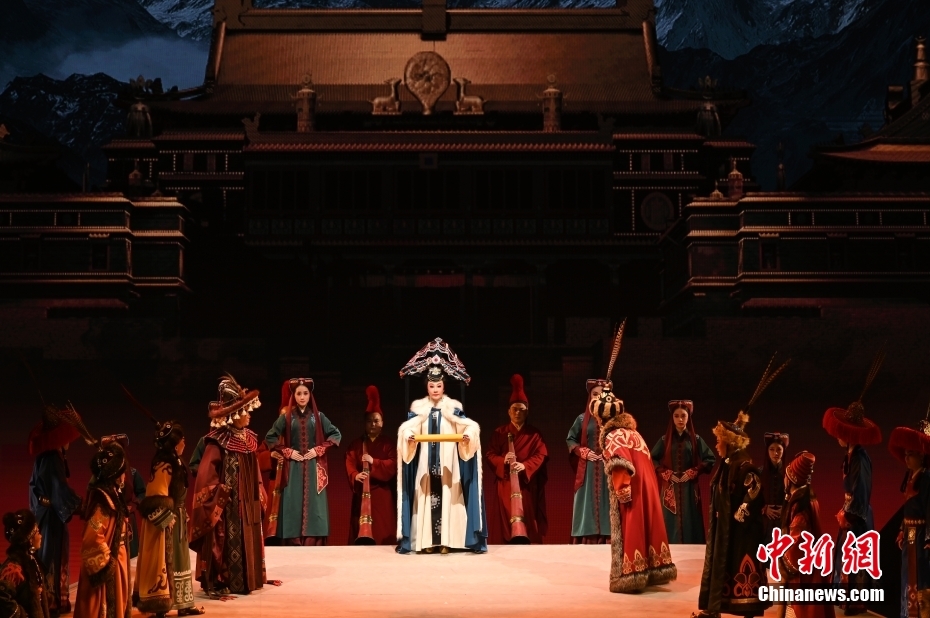 10月11日晚,大型新編歷史粵劇《文成公主》在廣東廣州大劇院首演。該劇以文成公主和親進(jìn)藏的歷史事件為依據(jù)創(chuàng)作,講述了文成公主堅(jiān)守吐蕃四十年,促進(jìn)了吐蕃經(jīng)濟(jì)、文化的發(fā)展,加強(qiáng)了漢藏人民的友好關(guān)系。中新社記者 陳楚紅 攝