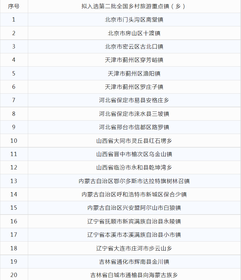 第二批全國鄉(xiāng)村旅游重點(diǎn)鎮(zhèn)(鄉(xiāng))名單