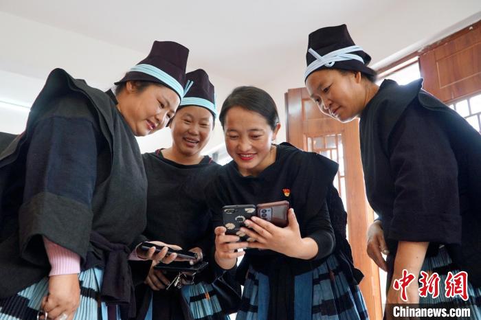 圖為白褲瑤居民正在通過手機了解信息。韋國政 攝