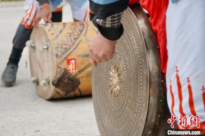 圖為白褲瑤居民正在敲擊銅鼓。韋國政 攝