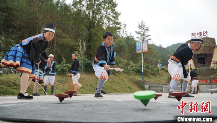 圖為白褲瑤居民正在玩轉陀螺。韋國政 攝