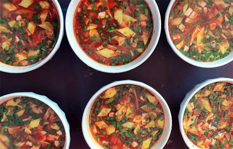 盛一碗細(xì)面,再澆些許酸湯,酸中帶辣、柔軟耐嚼、湯香撲鼻,開胃爽口、色香味俱佳。特別是夏季時(shí)分,一碗酸湯面絕對(duì)是開胃醒腦又提神的不二之選。