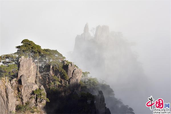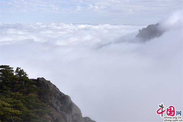 11月23日下午,安徽黃山風景區(qū)雨后放晴,山巒之中,云海彌漫,縹緲無形,奇松、怪石和群峰在的云海間時隱時現,亦夢亦幻。