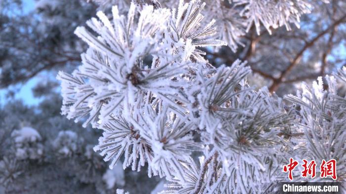 11月24日,邊城呼瑪出現(xiàn)霧凇美景。王婷 攝
