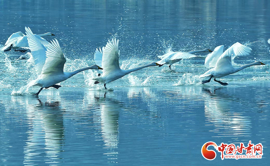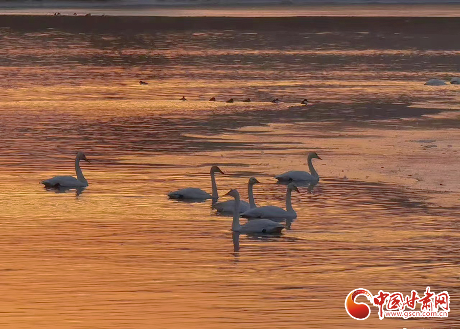 近日,位于蘭州市西固區(qū)達(dá)川鎮(zhèn)的三江口天鵝灘,陸續(xù)飛來天鵝越冬。在一平如鏡的水域,它們或安靜地棲息,或在水中暢游。