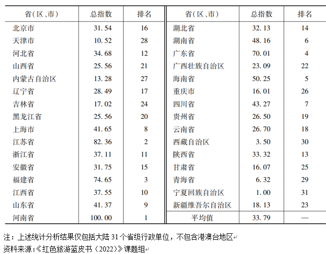 近日,北京第二外國(guó)語學(xué)院旅游科學(xué)學(xué)院與社會(huì)科學(xué)文獻(xiàn)出版社共同發(fā)布了紅色旅游藍(lán)皮書《中國(guó)紅色旅游發(fā)展報(bào)告(2022)》(以下簡(jiǎn)稱《藍(lán)皮書》)。《藍(lán)皮書》指出,中國(guó)紅色旅游發(fā)展水平持續(xù)提升,31個(gè)省級(jí)行政單位(不含港澳臺(tái)地區(qū))的紅色旅游發(fā)展指數(shù)排名中,位列前十的依次為河南省、江蘇省、福建省、廣東省、海南省、湖南省、四川省、上海市、山東省、江西省。