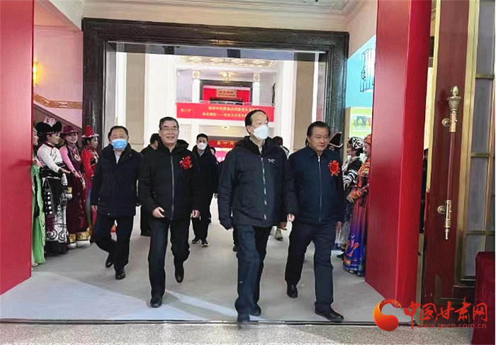 趙勇先后觀看“同心筑夢”“賡續(xù)文脈”“吉祥家園”三個主題展區(qū)的340幅書畫攝影作品和158冊精品古籍圖書,對甘肅近年來民族古籍整理工作給予了充分肯定。