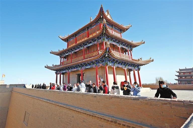 3月4日,游客在嘉峪關(guān)關(guān)城景區(qū)參觀游覽。春暖復(fù)蘇,甘肅省不少古絲綢之路節(jié)點(diǎn)城市喜迎旅游開門紅。在擁有世界文化遺產(chǎn)的甘肅省嘉峪關(guān)市,歷史文化古跡、現(xiàn)代主題樂園、夜市等景點(diǎn),都吸引了不少游客前來游覽體驗(yàn)。今年以來,當(dāng)?shù)赝瞥鑫穆孟M(fèi)券、景點(diǎn)優(yōu)惠套票、獎(jiǎng)補(bǔ)扶持政策等一系列措施,提振文旅消費(fèi)市場(chǎng)信心,助推絲路文旅產(chǎn)業(yè)強(qiáng)勁復(fù)蘇。