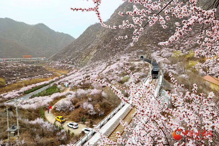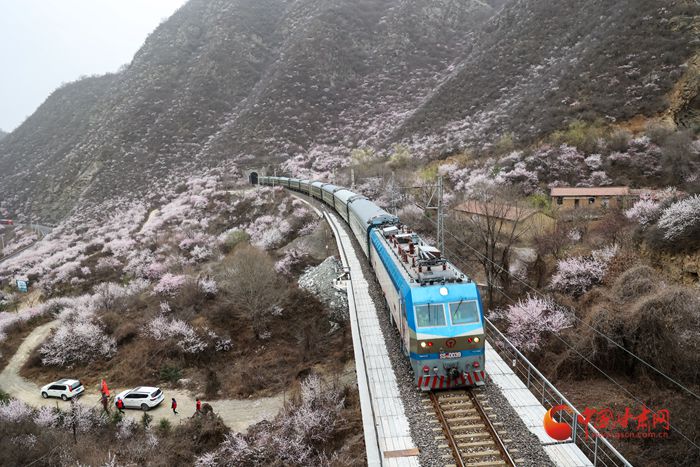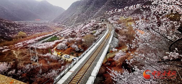 陽(yáng)春三月,桃之夭夭。在崇信縣的漫山遍野上,朵朵桃花迎來(lái)盛放期。微風(fēng)吹來(lái),暗香浮動(dòng)。近看,朵朵嬌俏的桃花層層疊疊,錯(cuò)落有致。遠(yuǎn)看,漫山紅遍如霞似錦,爛漫壯觀。特別是一列列火車穿行而過(guò),與桃花撞了個(gè)滿懷,奔向充滿希望的春天。