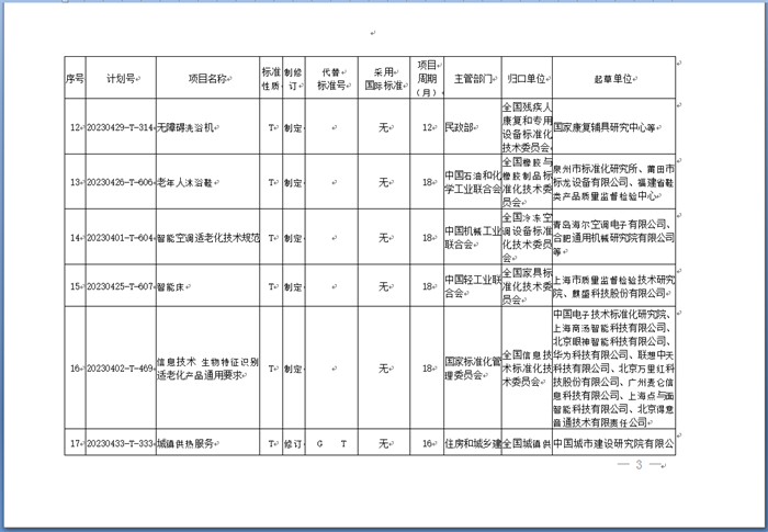 國家標(biāo)準(zhǔn)化管理委員會(以下簡稱國家標(biāo)準(zhǔn)委)發(fā)布《關(guān)于下達適老化改造推薦性國家標(biāo)準(zhǔn)專項計劃及相關(guān)標(biāo)準(zhǔn)外文版計劃的通知》(以下簡稱《通知》)。《通知》稱,為實施積極應(yīng)對人口老齡化國家戰(zhàn)略,對照全國政協(xié)關(guān)于加快推進社會適老化改造的民主監(jiān)督事項,經(jīng)研究,國家標(biāo)準(zhǔn)化管理委員會決定下達適老化改造推薦性國家標(biāo)準(zhǔn)專項計劃及相關(guān)標(biāo)準(zhǔn)外文版計劃(附后)。本批適老化改造領(lǐng)域推薦性國家標(biāo)準(zhǔn)專項計劃共計39項,其中制定35項、修訂4項。