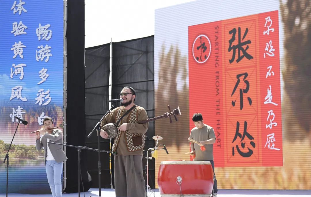 白銀市靖遠籍民謠音樂人張尕慫和他的團隊在旅游節(jié)上為觀眾演唱《沒有黃河我活不下》。多年來,他始終堅守初心,帶著作品向全國乃至全世界宣傳甘肅,宣傳家鄉(xiāng)白銀。喬麗霞 攝