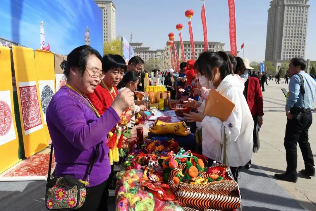 白銀市第五屆黃河風(fēng)情文化旅游節(jié)啟動儀式上游客駐足觀賞展覽品。喬麗霞 攝