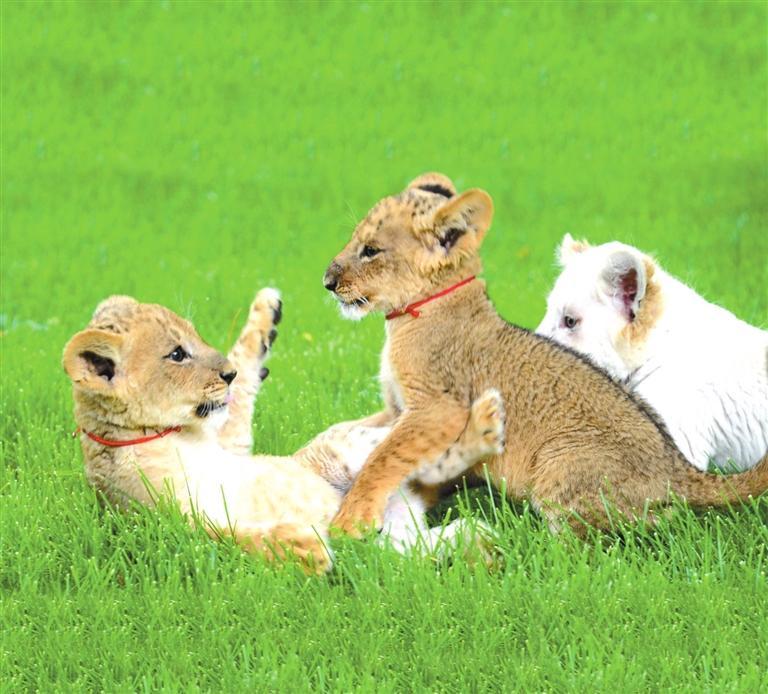 “小黃”“小花”“小算盤”“小白”是四只非洲獅,它們活潑健壯,愛(ài)跑愛(ài)跳,看上去奶兇奶兇的。